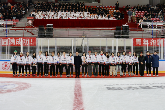 哈尔滨体育学院党委副书记、校长姜玉洪致闭幕辞。他表示:在为期5天的10场比赛中,女子冰球运动员们生动诠释了“为国争光、无私奉献、科学求实、遵纪守法、团结协作、顽强拼搏”的中华体育精神,每一场激烈的对抗,每一次精准的射门,都凝聚着运动员们的心血与汗水,凝聚着她们对冰球运动的热爱与执着,让我们看到了中国冰球运动的崛起与希望。真诚期待女子冰球运动员们能在第九届亚冬会上获得成功、刷新成绩,让“更快、更高、更强、更团结”的奥林匹克之光闪耀哈尔滨。让我们共同期待2025年第九届亚冬会女子冰球比赛的到来,期待年轻运动员们在亚冬会的赛场上绽放光彩,为中国冰球运动的繁荣发展贡献力量!