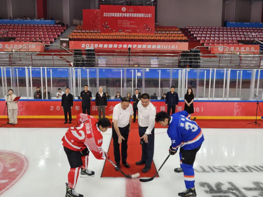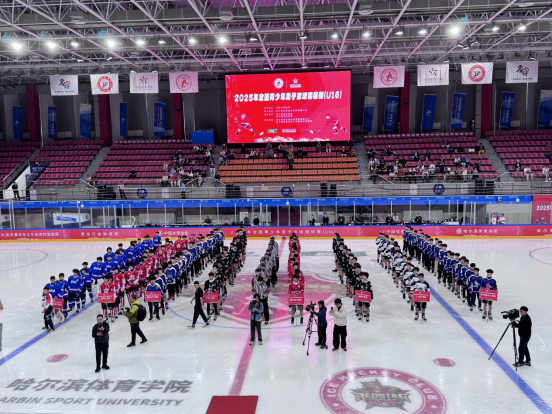 2025年8月5日9点,由中国冰球协会主办,哈尔滨名将体育发展有限公司承办,哈尔滨体育学院协办的2025年全国青少年男子冰球锦标赛(U16)开幕式在哈尔滨体育学院大学生滑冰馆隆重举行。共有北京队、北京冰协队、哈尔滨队、黑龙江队、吉林队、齐齐哈尔队、上海队和香港队共计8支队伍,进行为期6天的激烈争夺。中国冰球协会副主席杨永生、黑龙江省体育局党组成员副局长董晓冬、哈尔滨体育学院党委副书记王春雷、中国冰球协会竞赛部技术总监张寒松、黑龙江省冰球协会主席邹亚昌、哈尔滨市冬季运动项目训练中心主任赵亮、哈尔滨市香坊区文化体育和旅游局局长王育红、哈尔滨名将体育发展有限公司赵树峰出席开幕式。