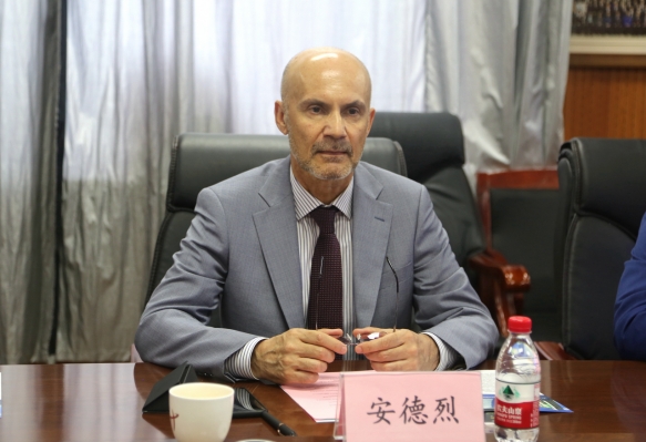 普鲁滕科·安德烈·多列维奇校长介绍了阿穆尔国立大学的办学发展历程、专业情况、师资情况、留学生招生、校际交流合作情况等。并谈到,阿穆尔国立大学十分重视体育,男子手球是学校优势项目,目前,准备新建一座滑冰馆,开展冰球、花样滑冰、短道速滑等项目训练,希望在短道速滑项目上得到哈体院的支持。