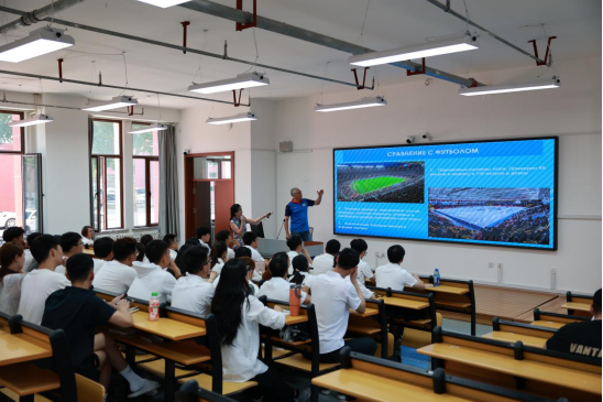 奥列格·齐甘辛一行对学校场馆进行了实地考察,并为冬奥学院学生作了一堂精彩的讲座,从班迪项目的发展历史、规则和各国的发展概况进行了生动的讲解,并就同学们感兴趣的问题进行了详细地解答。