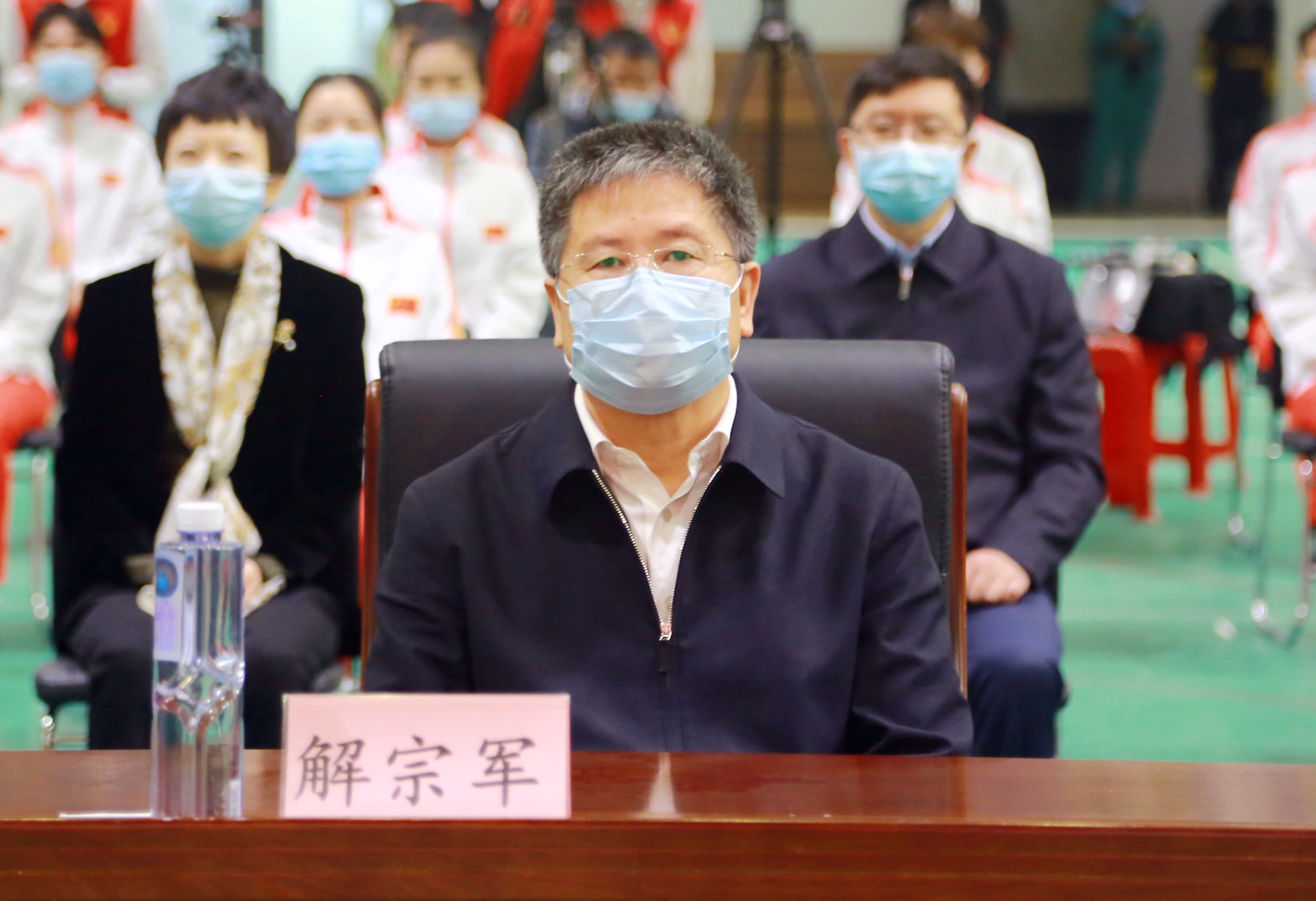 仪式最后,解宗军、兰景力、张广雷三位领导为启动仪式授旗。