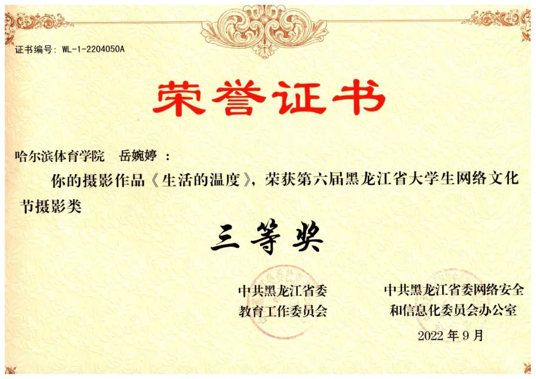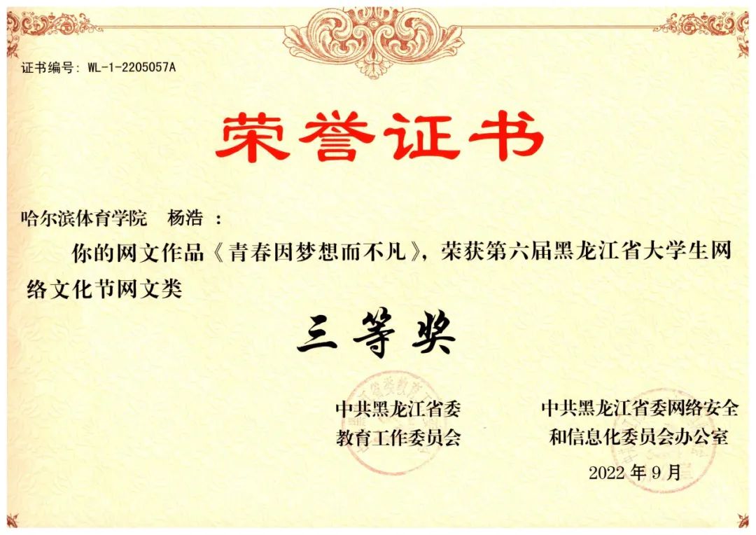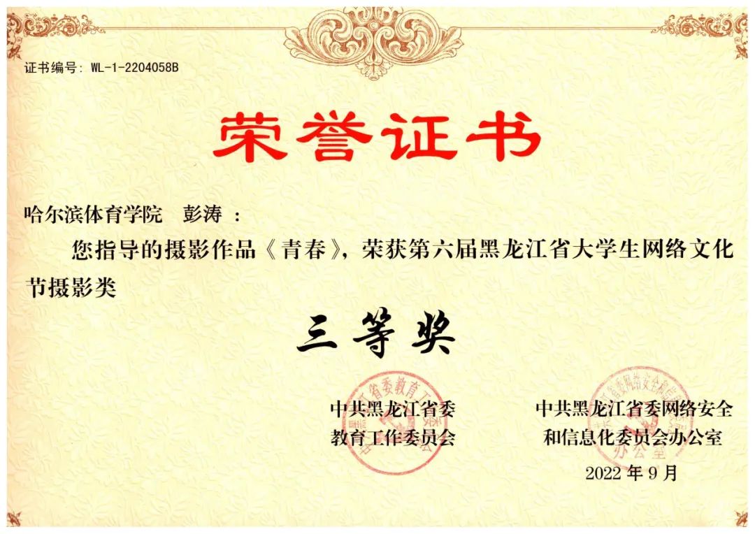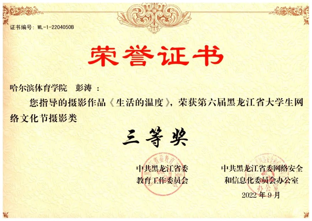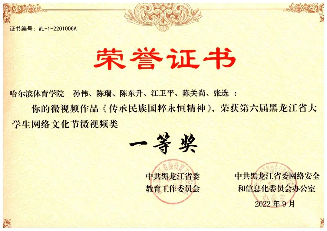 在“中共黑龙江省委教育工作委员会和中共黑龙江省网络安全和信息化委员会办公室联合举办的第六届黑龙江省大学生网络文化节”中,我校师生揽获8项等级奖: