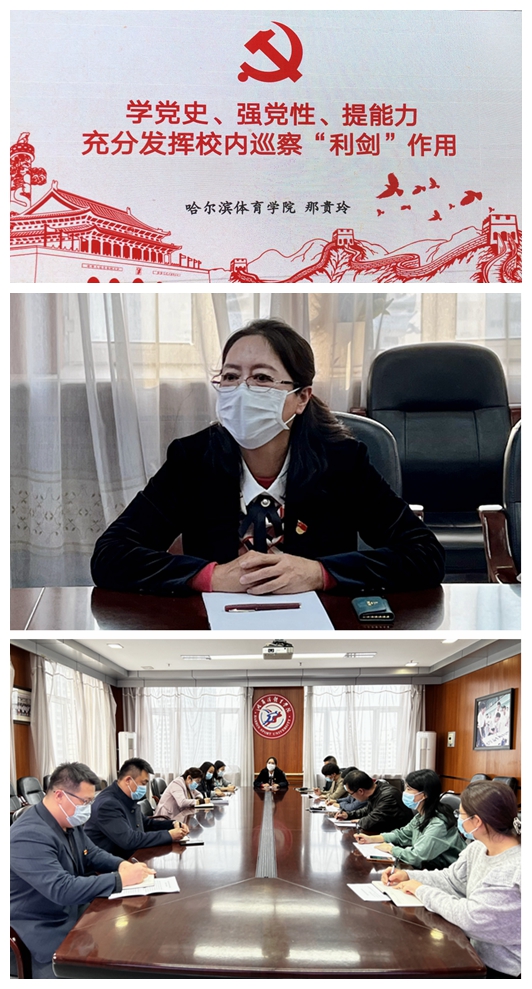 2021年10月26日,党委巡察组临时党支部在尚德楼九楼会议室召开专题党课会议,党支部书记、巡察组组长那贵玲同志讲授主题为《学党史、强党性、提能力,充分发挥校内巡察“利剑”作用》的专题党课。巡察组全体成员参会。