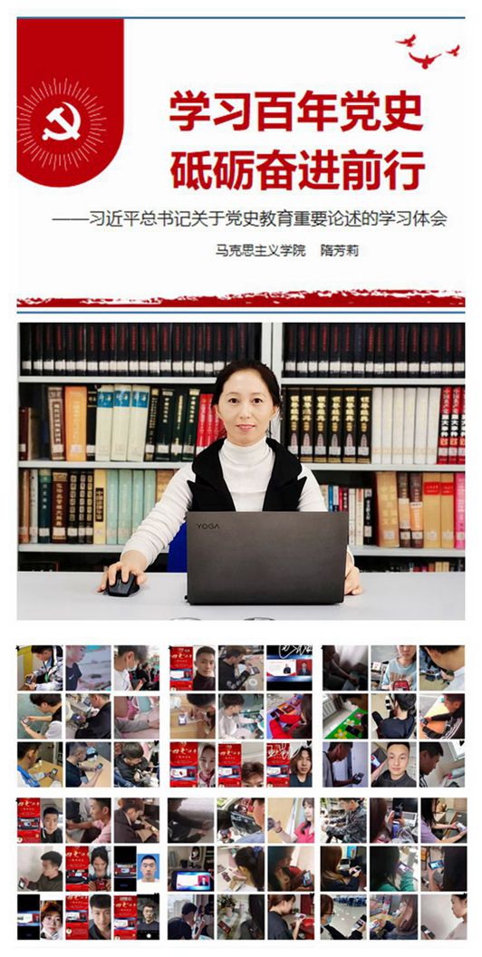 力做主力军,让党史教育实起来:马克思主义学院充分发挥专业优势和资源优势,依托“党史学习教育专题讲座”、“黑龙江省党史教育青年宣讲团”、“主题党日”、“工会学习”等载体,以强烈的责任感和使命感担负起哈尔滨体育学院党史学习教育主力军的重任。马克思主义学院教师隋芳莉以“学习百年党史、砥砺奋进前行”为主题为学校处级以上干部进行专题讲座,受到广泛好评;联合校团委举办“凝心聚力学党史,砥砺前行强党性”团员青年党史知识竞赛和“学党史强信念跟党走”学生宣讲系列活动,激发了广大团员青年学习党史的热情,明确使命与担当,为成为担负民族复兴重任的时代新人而努力奋斗。