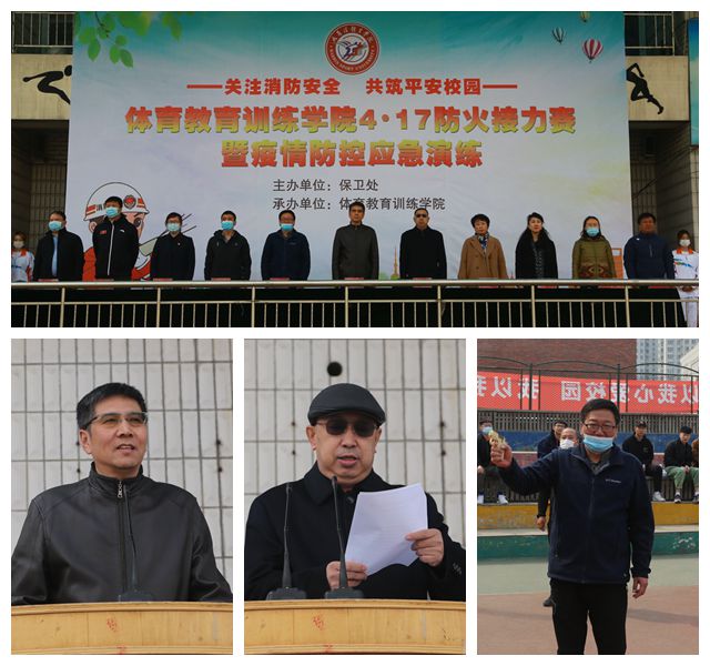 为全面普及消防安全常识,进一步增强师生消防安全意识,第6个全民国家安全教育日——2021年4月15日,学校保卫处和体育教育训练学院联合举办了4﹒17防火接力赛暨疫情防控应急演练。校党委副书记满春涛宣布比赛开始,副校长周霄闻做动员讲话,工会主席赵俊岭为防火接力赛发枪。