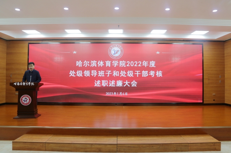 按照学校党委工作安排,依据《哈尔滨体育学院2022年度处级领导班子和处级干部考核实施方案》要求,2023年1月6日,学校党委召开2022年度处级领导班子和处级干部考核述职述廉大会和民主测评工作。述职大会采取现场结合视频会议的形式进行,校领导班子成员,处级干部,全体科级干部,各二级学院教研室主任、党支部书记及教学科研骨干代表、民主党派负责人和党政机关、教辅单位科级以下人员及各二级学院全体教职工线上参加会议。会议由党委组织部长王广贵主持。