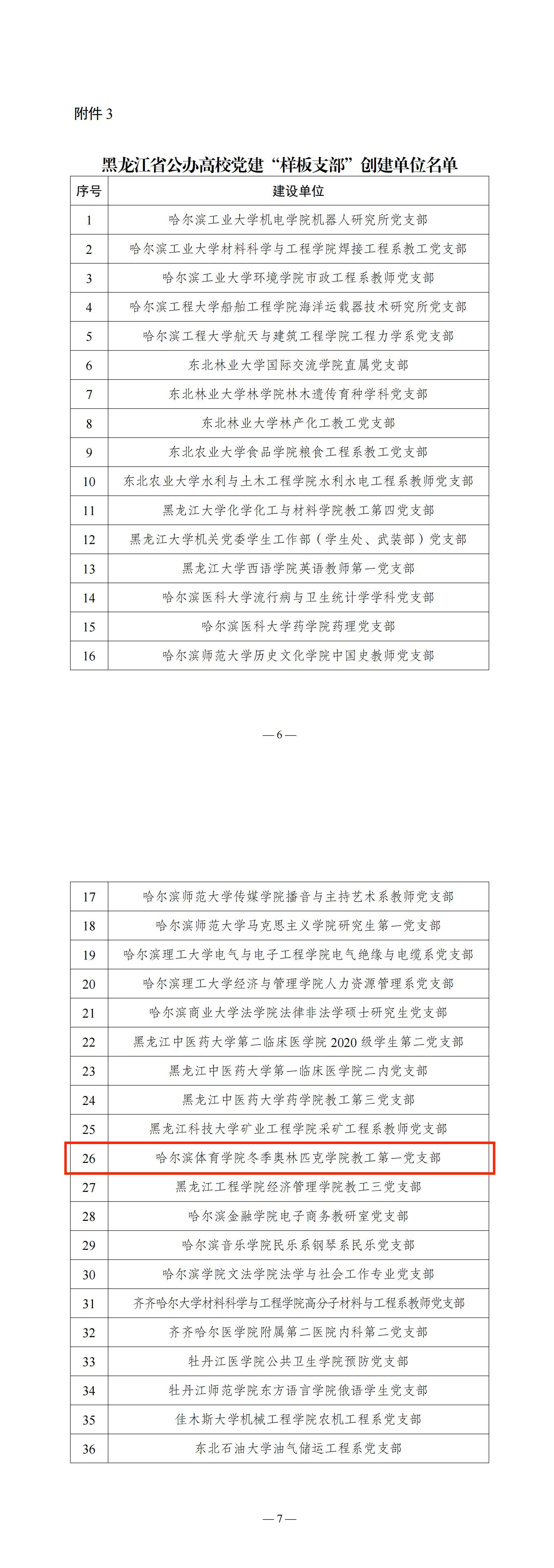 日前,教育工委公布了黑龙江省公办高校党建“示范创建”工作遴选结果,我校冬季奥林匹克学院教工第一党支部和运动人体科学学院教工第二党支部分别获评黑龙江省公办高校党建“样板支部”创建单位和培育创建单位。