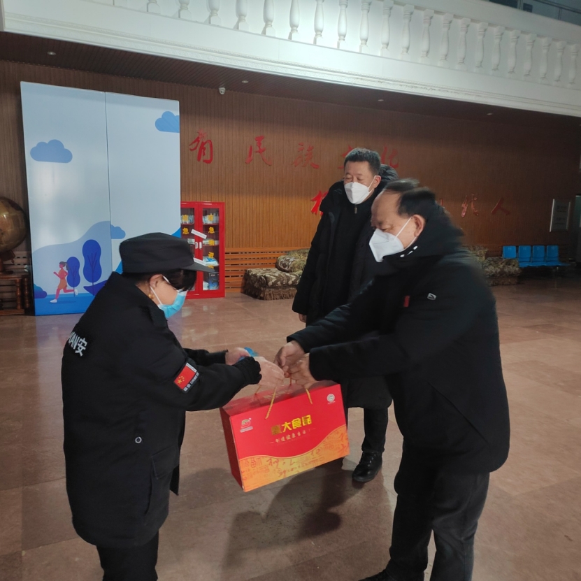 为确保春节期间的校园安全稳定,在校教职工能够度过一个平安祥和的春节,很多教职工放弃休假,坚守工作岗位,履行工作职责。校领导先后走访了各门卫室、教学楼、学生宿舍、食堂、场馆、变电所、快递点等地,看望正在值班的同志。每到一处,都与值班人员亲切交谈并送上了慰问品。领导们详细了解他们的工作生活情况、认真询问假期人员安排和设备运行等情况,对大家的辛勤劳动和无私奉献表示感谢,希望大家继续发扬爱校如家、爱岗敬业的可贵精神,认真做好各项工作,在各自的岗位上做出新的贡献,并祝大家新年愉快,阖家幸福。
