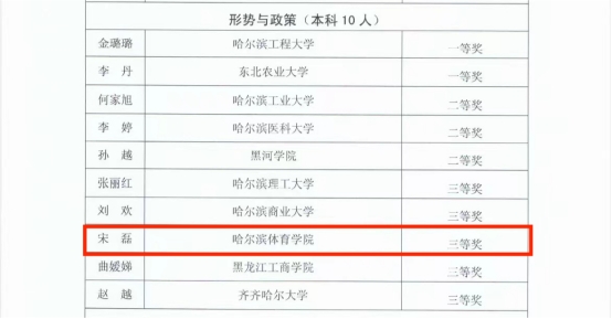 由黑龙江省教育厅、黑龙江省科教文卫体工会委员会联合举办主办的2022年黑龙江省高校思想政治理论课教师教学大赛,共评选出一等奖24项,二等奖35项,三等奖64项,评选结果现已公布。