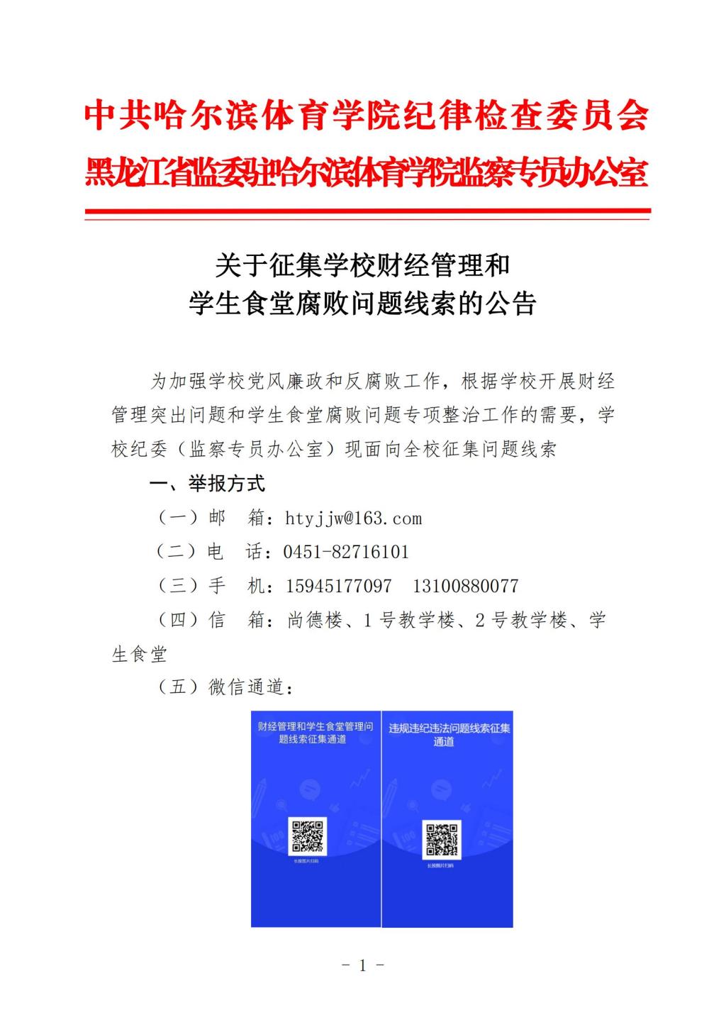 关于征集学校财经管理和学生食堂腐败问题线索的公告