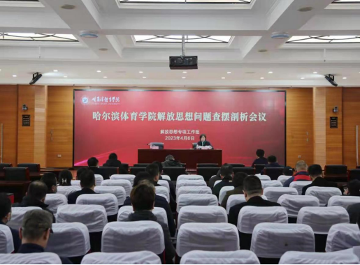 为进一步推进思想解放,按照《哈尔滨体育学院深化能力作风建设“工作落实年”活动解放思想专项工作方案》要求,我校于4月6日在尚德楼学术报告厅召开了哈尔滨体育学院解放思想问题查摆剖析会。各部门、各单位主要负责人和各二级学院党总支书记参加会议,宣传统战部长于晓阳主持会议。