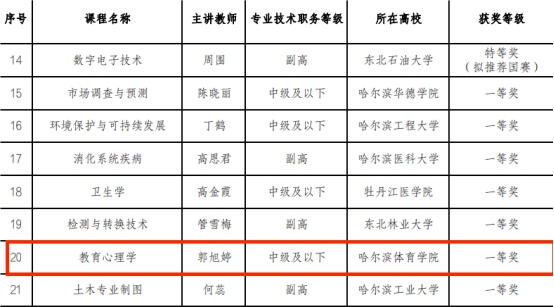 2023年4月15日,第三届黑龙江省教师教学创新大赛圆满落幕。我校继前两届获得六项三等奖后今年又添佳绩,郭旭婷教师团队获得省赛一等奖、张莹教师团队获得省赛二等奖,突破往届最好成绩。