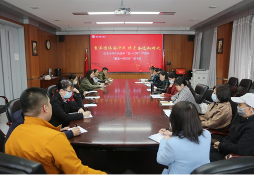 为纪念纪念中共中央发布“五一口号”75周年,推动我校党外知识分子和无党派人士在重温历史中铭记合作初心,在弘扬传统中深化政治共识,进一步筑牢团结奋斗的共同思想政治基础,按照工委统战部《关于开展纪念中共中央发布“五一口号”75周年活动的通知》要求,学校于4月21日召开“重温团结奋斗史 携手奋进新时代”——纪念中共中央发布“五一口号”75周年“重温一段历史”读书会。民盟哈体院支部代表、九三学社哈体院支社代表、民革党员代表、无党派知识分子代表及宣传统战部全体人员参加会议。会议由宣传统战部部长于晓阳主持。