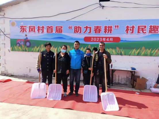 哈尔滨体育学院驻抚远市通江镇东风村驻村村工作队联合村两委,利用村民春耕备耕时节,取材于耕种、丰收等生活环节,精心设计接力振兴、丰收击鼓、颗粒归仓、心想事成等趣味运动项目,巧妙融合进百姓喜爱的打口袋、套圈、持球跑、拔河等游戏,使得各个比赛项目便于参与、妙趣横生。村民踊跃参加,兴致高昂,一时间村委会广场人声鼎沸,热闹非凡,加油声、喝彩声、孩子的欢笑声此起彼伏。同时,比赛奖品被设计成装粮铲、劳保手套、保温杯、花露水等农用设备和生活用品,深受村民喜爱,真正实现“助力”春耕。