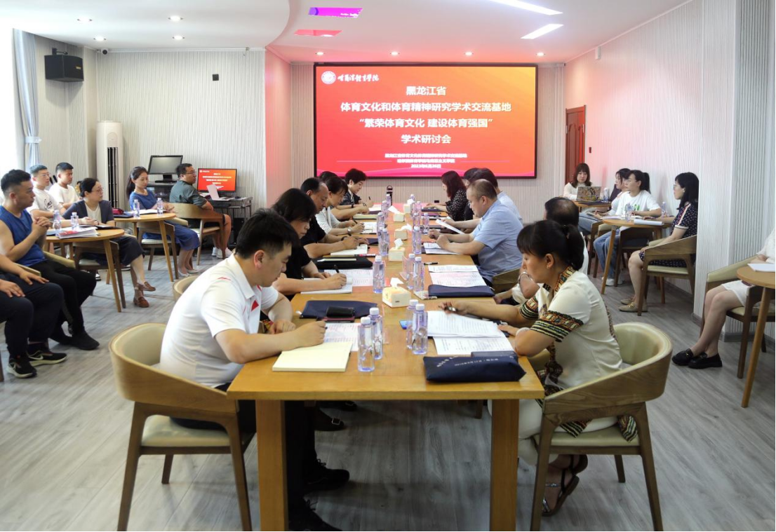 2023年6月26日下午,由我校主办的“繁荣体育文化 建设体育强国”学术研讨会在校求智楼11楼“教工之家”举行。黑龙江省体育文化和体育精神研究学术交流基地、哈尔滨体育学院马克思主义学院共同承办了这次会议。校党委副书记姜玉洪、校党委委员、副校长齐景嘉、校部分中层干部、马克思主义学院教师代表和我校硕博学生代表参加会议。