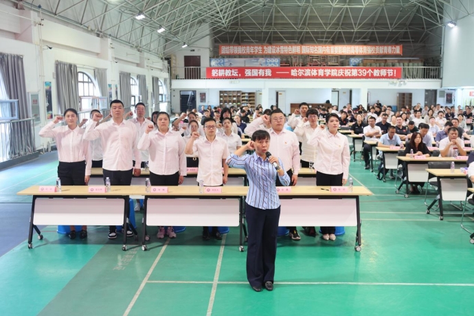 “我志愿成为一名人民教师,忠诚党的教育事业,遵守教育法律法规,履行教书育人职责,引领学生健康成长,做到有理想信念、有道德情操、有扎实学识、有仁爱之心,为教育发展、国家繁荣和民族振兴努力奋斗!”2023年校教学名师杨慧馨教授带领新入职教师代表庄严宣誓,誓言声响彻全场。