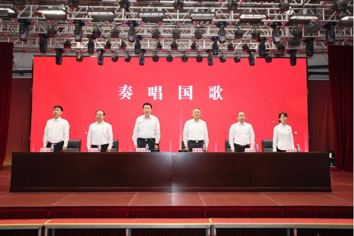 大会在庄严肃穆的国歌声中拉开序幕。