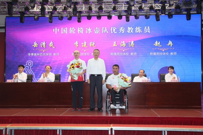 校长陈德明为中国轮椅冰壶队优秀教练员颁奖