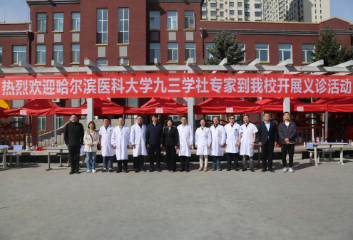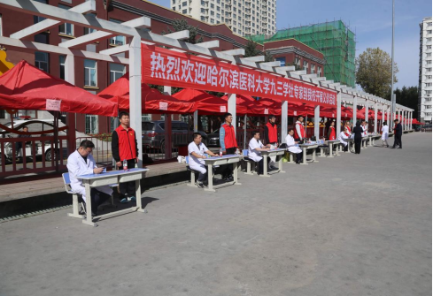 为深化主题教育成效,推动能力作风建设“工作落实年”活动走深走实,传递关爱,守护健康,增强同学们的健康意识、保障军训学生身体健康,营造和谐的校园氛围。9月24日上午,由学校宣传统战部牵头,保卫处、研究生院、黑龙江省滑雪运动学校(附属竞技体校)联合邀请哈尔滨医科大学九三学社专家到学校开展义诊活动。副校长王广贵,党委宣传统战部部长于晓阳,保卫处处长王永,黑龙江省滑雪运动学校(附属竞技体校)直属党支部书记张大业出席本次活动。活动由研究生院辅导员彭涛主持。