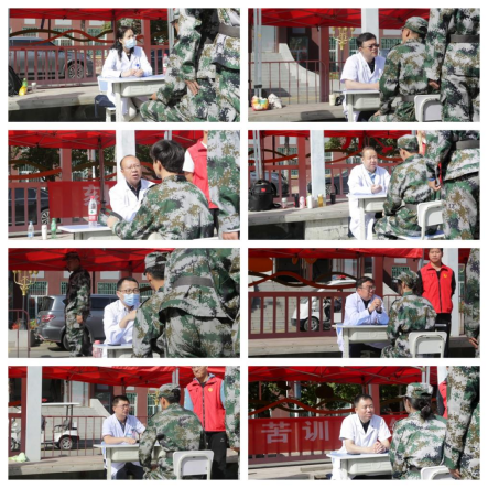 哈尔滨医科大学专家团队成员:哈医大一院口腔科主任刘冰,哈医大二院内分泌科副主任于惠敏,哈医大四院整形美容激光中心主任李巍、呼吸内科教授张新、骨外科教授周辰亮,哈医大肿瘤医院乳腺外科副主任李大林、消化内科副主任李燕京以及头颈外科主任苗素生面向我校军训学生进行健康义诊。义诊涵盖骨科、内分泌科、头颈外科、呼吸科、整形科以及消化内科等。在义诊现场,各科室医务人员对前来问诊的学生给予耐心诊疗、答疑解惑,对消化、皮肤、骨伤相关疾病的防治给予合理建议。医生们用严谨的知识、专业的行动,践行着医务工作者“敬佑生命,救死扶伤,甘于奉献,大爱无疆”的初心与使命,保卫着同学们的生命健康,构筑军训健康安全防线。