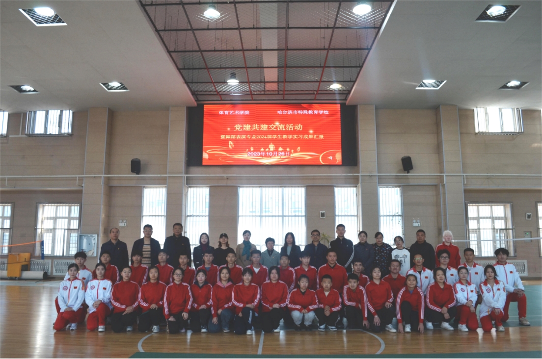 为深入开展能力作风建设“工作落实年”活动,巩固拓展主题教育成果,促进党建与业务深度融合,扎实开展好学生实习工作,10月26日,体育艺术学院班子成员及党员教师等一行8人赴哈尔滨市特殊教育学校开展党建共建交流活动,并观看了舞蹈表演专业2024届学生教学实习成果汇报。校纪委书记李柃燕以普通党员身份参加了此次活动,实地参观了哈尔滨市特殊教育学校教学设施和特色课程。