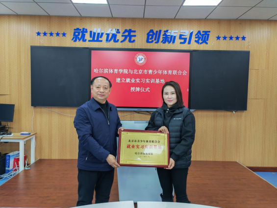 关富余代表学校与北京市青少年体育联合会签定就业实习实训基地合作协议。