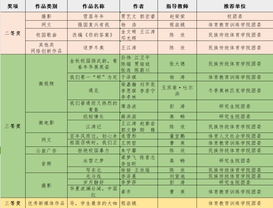 近日,由省委教育工委、省委网信办主办,全省高校网络思政工作中心承办的以“争做校园好网民,汇聚网络正能量,挺膺担当建新功”为主题的第七届全省大学生网络文化节和全省高校网络教育优秀作品推选展示活动评选结果揭晓。我校共征集作品108项,有19项作品斩获佳绩,其中二等奖4项,三等奖15项。