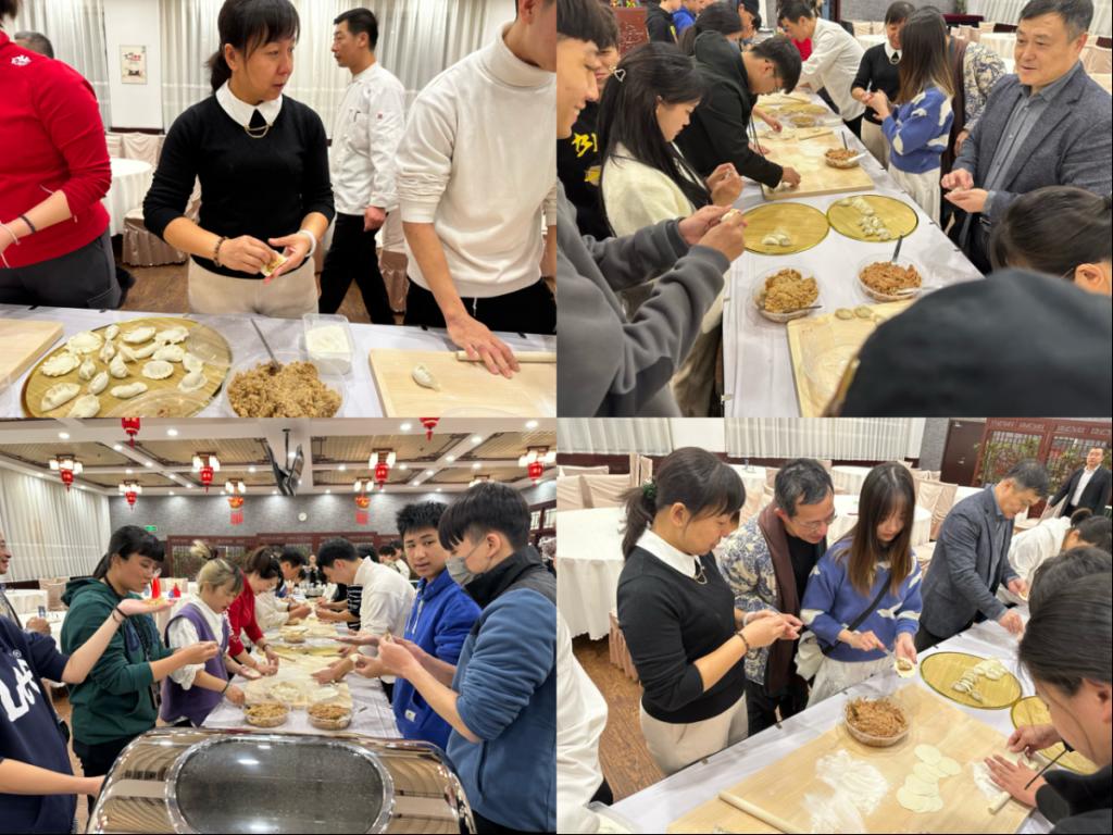 活动最后,哈尔滨体育学院招生就业处处长刘景祥、民族传统体育学院党总支书记吕吉勇、民族传统体育学院院长杨慧馨及部分老师与台湾中国文化大学师生欢聚一堂,共包饺子话团圆。一只只饺子既蕴含着大家浓浓的不舍与留恋,又满载着希望台湾同胞返程平安的美好祝愿,为本次活动画上了圆满的句号。
