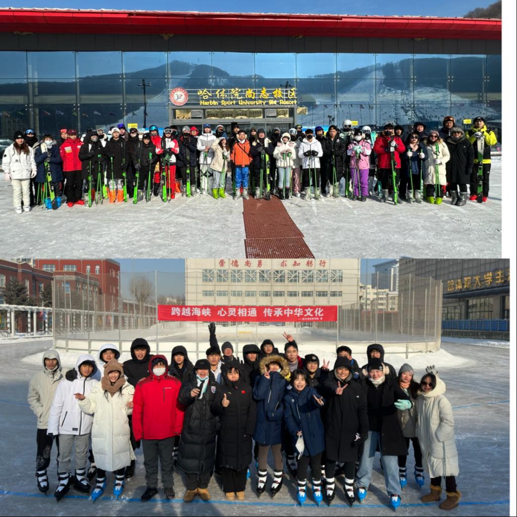 除各类武术项目展演与交流外,还安排了冰雪特色研学项目,包括冰上项目体验、雪上项目体验、雪地足球观赛等。冰上项目体验在哈尔滨体育学院室外滑冰场举行,由速度滑冰世界冠军于静担任指导老师,学员在学习体验的同时,与世界冠军面对面交流互动,收获颇丰。雪上项目体验在哈尔滨体育学院尚志校区举行,陈曲骏骊老师带领21名学生对学员进行了一对一专业滑雪教学指导,尚志校区主任曲爽、综合办公室主任赵航、后勤保障科科长杜运涛全程接待,并确保了雪上项目体验有序进行。活动期间,恰逢2024上海合作组织国家雪地足球赛在哈尔滨体育学院滑冰馆举办,来自台湾中国文化大学的师生观看了该项赛事的揭幕战,亲临现场体验了冰雪项目的独特魅力。