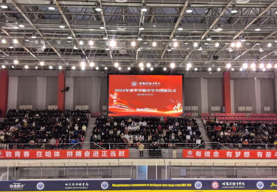 春光为序,奋楫前行。为深入学习贯彻党的二十大精神,激发全校师生的爱国热情与使命担当,引导青年学生上好新学期“开学第一课”,全力以赴投入到新学期的学习和生活中,3月4日清晨,哈尔滨体育学院2024年春季学期开学第一天,学校在滑冰馆隆重举行升国旗仪式。党委副书记、校长陈德明,党委副书记姜玉洪,党委委员、副校长齐景嘉、王广贵,党委委员、宣传统战部部长于晓阳,学生工作部(学生处)、校团委、武装部(保卫处)、招生就业处全体人员;各学院党总支书记、副书记、辅导员、兼职班主任以及全体在校学生参加活动。仪式由校团委副书记张爽主持。