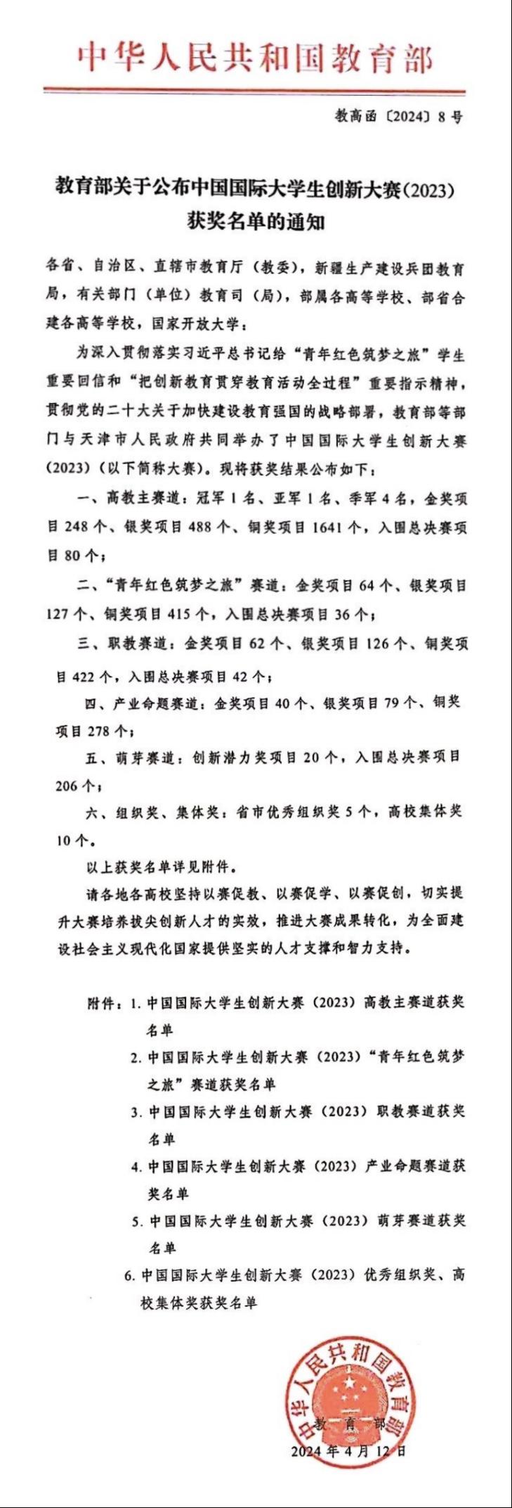 近年来,学校深化创新创业教育改革,加强创新创业赛事组织,由招生就业处牵头,校团委、教务处联合举办了第九届中国国际“互联网+”大学生创新创业大赛校内选拔赛,经过多方合力、统筹谋划,共有300余项作品通过网报,1355人次参赛,经二级学院推荐,166项目参与校赛,择优推荐25项作品参加省赛,16项作品获得第九届“互联网+”大学生创新创业大赛黑龙江省赛区奖项,其中2项作品进入省赛路演,最终荣获省级金奖1项,银奖1项,铜奖14项;由运动人体科学学院教师张颖、王楷等指导的项目《On Track--儿童体态健康守护者》斩获国赛铜奖,彰显了学校创新创业教育的显著成效。