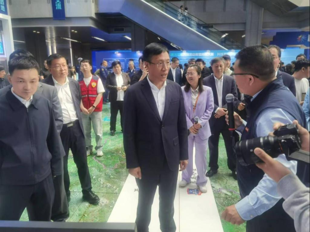 黑龙江省人民政府副省长张起翔(中)、黑龙江省科技厅厅长陈苏(左)在展会现场就“智能冰场”相关问题与我校参展人员进行了深入交流