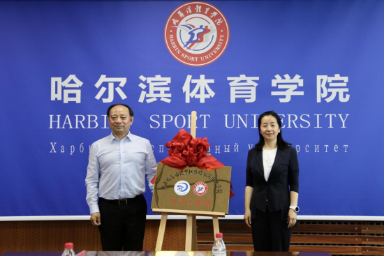 建华区委副书记曹颖与哈尔滨体育学院党委副书记姜玉洪共同为“人才工作站”揭牌。