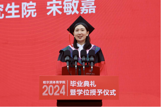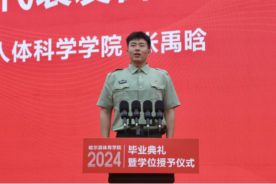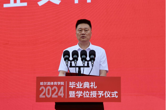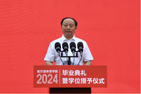 校党委副书记、校长陈德明以《赓续奋斗,以青春之名建时代新功》为题为2024届毕业生送上祝福、寄予希望,向顺利完成学业、走向广阔舞台的全体毕业生表示热烈的祝贺。临别之际,陈德明校长向毕业生们提出三点希望:一是志存高远,在立志报国中勇毅前行。习近平总书记强调,“只有把人生理想融入国家和民族的事业中,才能最终成就一番事业”。希望同学们心怀“国之大者”、勇担重任,赓续哈体的光荣传统,以青春之我、奋斗之我为强国建设、民族复兴伟业贡献青春力量;二是脚踏实地,在笃行实干中成就未来。习近平总书记曾勉励广大青年:“要不怕困难、攻坚克难,勇于到条件艰苦的基层、国家建设的一线、项目攻关的前沿,经受锻炼,增长才干。”希望同学们干得了“苦差事”,扛得住“苦累活”,下得了“苦功夫”,在历经“苦其心志、劳其筋骨”的锻炼和“饿其体肤、空乏其身”的磨炼后百炼成钢;三是不懈奋斗,在加快推进体育强国建设中再建新功。希望同学们始终怀揣对体育事业的热爱和信念,做群众体育的健身指导者,青少年体育教育的传播者,竞技体育的引领者,科技体育的实践者,发扬中华体育精神,传播中华体育文化,解决体育科技领域关键性“卡脖子”问题,以真实、有效的作为为体育事业开辟新领域、新赛道,发展新动能、新优势,在加快推进体育强国建设中再建新功。