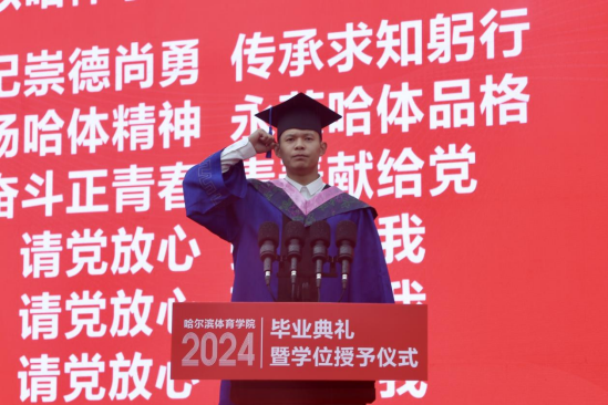 六月骊歌起,青春再启航。毕业典礼在教师代表、毕业生代表献唱《再一次出发》的合唱声中落下帷幕。2024届毕业生将传承哈体光荣传统,满载师长祝福嘱托,担当起强国建设、民族复兴的重任,在新征程上继续创造属于自己的青春华章。