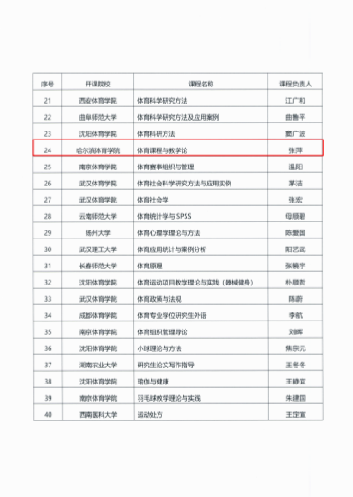 | 我校获批首批全国体育专业学位研究生在线示范课程名单 |