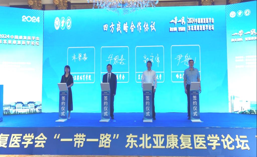 开幕式上,我校与中国康复医学会、哈尔滨工程大学、黑龙江中医药大学签订了“体医工融合”四方战略合作协议。合作协议的签订,是深入贯彻党的二十大和二十届三中全会精神,全面落实2023年习近平总书记在黑龙江考察时提出的“把发展冰雪经济作为新增长点,推动冰雪运动、冰雪文化、冰雪装备、冰雪旅游全产业链发展”重要指示,助力“体育强国”“健康中国”“教育强国”建设,充分发挥“三校一会”各方面独特优势,因地制宜培育新质生产力的重要举措。