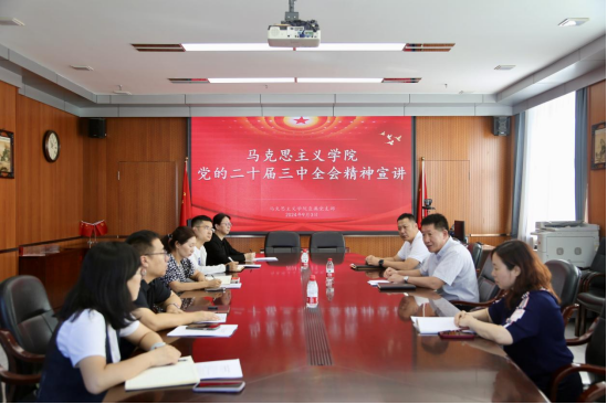 为深入学习贯彻党的二十届三中全会精神,坚持思政课建设与党的创新理论武装同步推进,9月3日下午,学校党委书记兰景力为马克思主义学院宣讲党的二十届三中全会精神,并主持集体备课。学院领导班子成员、《习近平新时代中国特色社会主义思想概论》和习近平经济思想课程部分专兼职教师参加了宣讲活动。