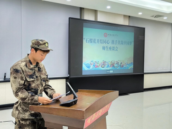 为贯彻党的二十届三中全会及中央、省委民族工作会议精神,以铸牢中华民族共同体意识为主线推动民族团结进步教育,中秋佳节之际,学校学生工作部于9月16日下午为2024级新疆、西藏籍新生开展“石榴花开结同心 携手共筑中国梦”师生座谈会。学生工作部部长张海滨、少数民族辅导员凯丽比努尔・喀迪尔及全体相关新生参加,座谈会由玉苏甫・吐尔洪主持。