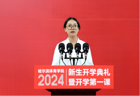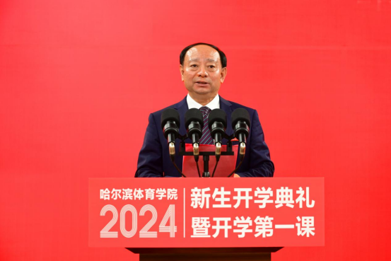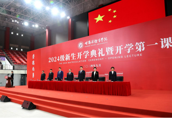 上午9点30分,2024级新生开学典礼暨开学第一课在雄壮的国歌声中拉开帷幕。校党委书记兰景力、校长姜玉洪、副校长齐景嘉、王广贵、曹连众,校工会主席赵俊岭、黑龙江省冬季运动与后备人才管理中心主任王曼丽、雨佳农产品有限公司总经理陈雨佳两位校友代表及韩淼雨、王海涛等奥运冠军、世界冠军、教练员、老师们出席开学典礼。职能部门主要负责同志,各学院领导班子成员,全体辅导员,2024级专本硕博新生以及新生家长和亲友们与全体新生一起见证这难忘时刻。典礼由副校长齐景嘉主持。