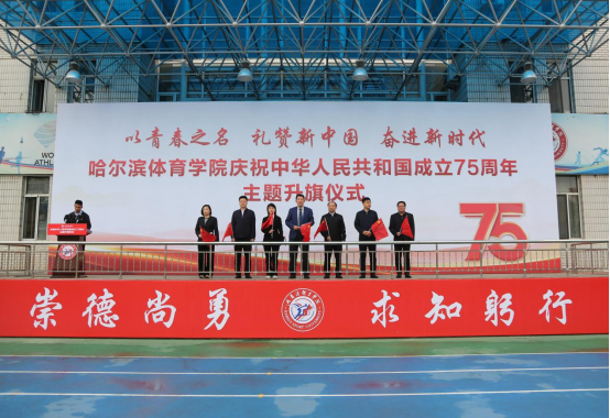神州万里裹金装,举国欢腾迎国庆。为庆祝中华人民共和国成立75周年,践行爱国、爱党教育。厚植家国情怀,明确使命担当。9月30日清晨,哈尔滨体育学院“庆祝中华人民共和国成立75周年”升旗仪式在田径场隆重举行,共贺祖国荣耀。