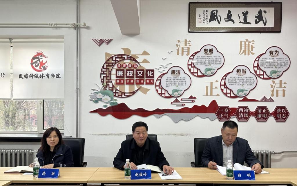 民族传统体育学院党总支书记王德新、院长杨慧馨、副书记周滨、副处级辅导员于科宇及学院两办、各教研室主任参加了此次检查工作。检查活动由民族传统体育学院党总支书记王德新主持,院长杨慧馨做汇报。