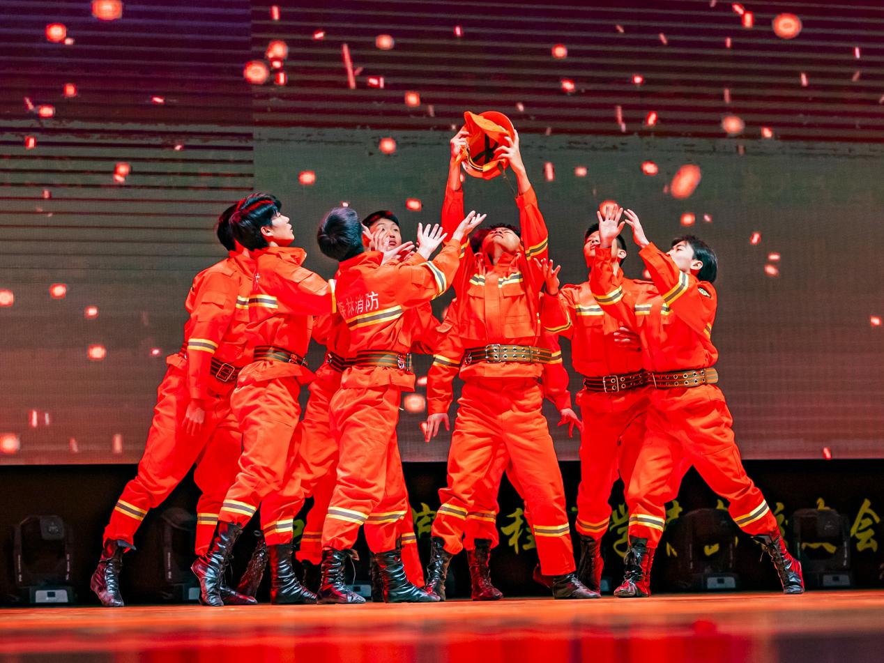 《烈火英雄》舞蹈作品聚焦消防员群体,运用现代舞独特的创作形式,生动塑造了消防英雄们英勇无畏、甘于奉献的光辉形象,通过情景再现真实还原了消防员们逆火而上、用生命捍卫生命的震撼场景,同时巧妙融入思政元素与党员先锋模范精神,极大增强了作品的艺术感染力,引发观众强烈共鸣。
