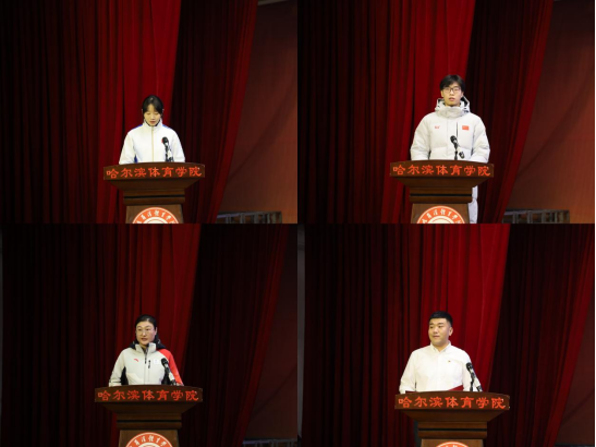 冬奥学院服务亚冬会的师生代表杨佳、门光磊、段朗做表态发言,燃起了学院师生“服务亚冬,善于作为”的热烈激情,发出了“不易其心,不改其志”的冬奥青春强音。