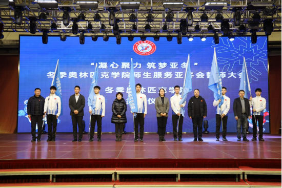 庄严的授旗仪式,象征着冬奥学院师生为亚冬会服务的使命与担当。