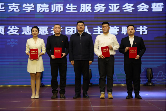 学院对一批优秀志愿者和团队进行了表彰,并颁发了“志愿服务最美人物奖”“最佳准备团队奖”,以及“党员志愿者先锋奖”绶带,充分展现了冬奥学院在亚冬会志愿服务中的组织力与号召力。此外,志愿者团队主管聘书的颁发仪式为进一步规范和推动志愿服务工作的顺利开展奠定了坚实基础。