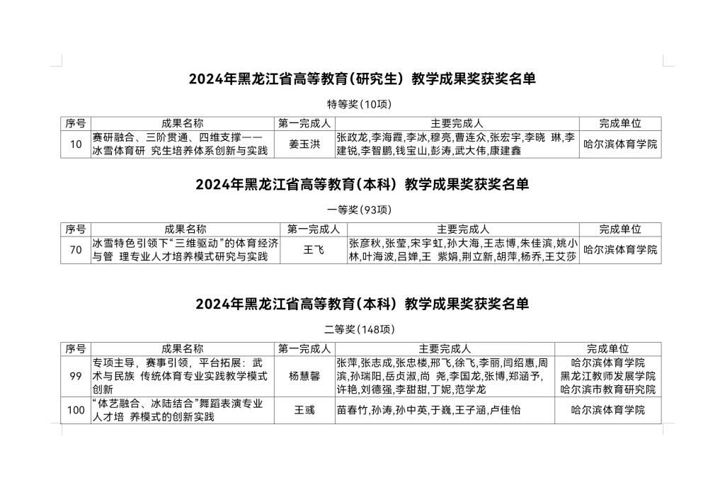 近日,黑龙江省教育厅公布了2024年黑龙江省高等教育(本科、研究生)和职业教育教学成果奖获奖名单,我校共有4项教学成果荣获奖项,其中特等奖1项、一等奖1项和二等奖2项。