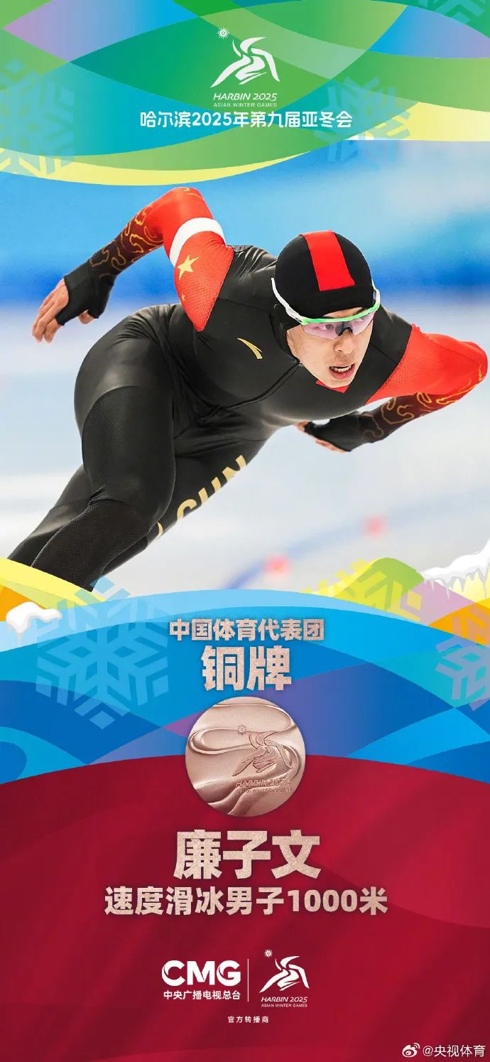 2月11日,哈尔滨亚冬会速度滑冰男子1000米决赛,中国选手宁忠岩(我校2021届毕业生)夺得金牌,以1分08秒81的成绩破亚洲纪录及赛会纪录,廉子文(我校2020届毕业生)获得铜牌。