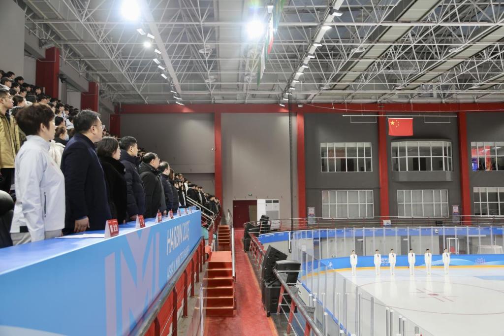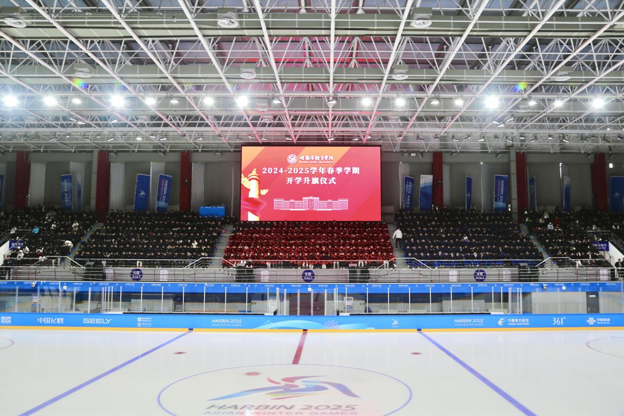 万里春风起,山河气象新。为深入学习贯彻党的二十大和党的二十届三中全会精神,激发全校师生的爱国热情与使命担当,进一步发挥思想引领作用,引导青年学生上好新学期“开学第一课”,3月4日清晨,哈尔滨体育学院在大学生滑冰馆隆重举行新学期升国旗仪式。校党委副书记、校长姜玉洪,校党委副书记王春雷,副校长王广贵,校党委委员、宣传统战部部长于晓阳;学生工作部(团委)、武装部(保卫处)全体人员;各学院党总支书记、副书记、辅导员、兼职班主任以及学生代表等2000余人参加此次活动。仪式由校团委副书记张爽主持。