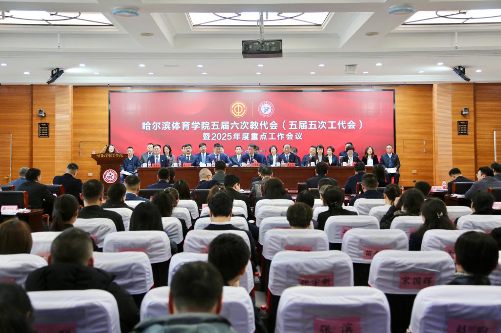 3月12日至13日,哈尔滨体育学院第五届教职工代表大会第六次会议、第五届工会会员代表大会第五次会议暨2025年度重点工作会议在崇德楼三楼学术报告厅隆重召开。会议深入学习贯彻全国教育大会精神和习近平总书记关于教育的重要论述,全面总结学校2024年工作成效,科学谋划2025年重点任务,团结动员全校师生员工凝心聚力、守正创新,奋力谱写学校高质量发展新篇章。